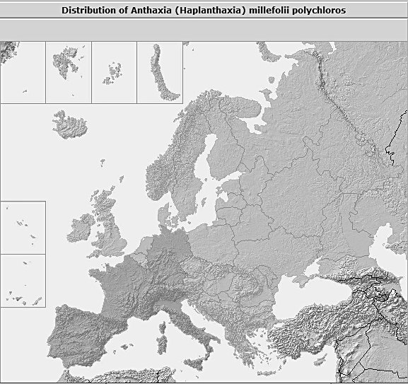 Tornando alla distribuzione geografica delle due sottospecie, una indicazione di massima si può trovare su FaunaEur, di cui riporto le mappe di distribuzione dei due taxa, a mio avviso, corrette, eccetto per il fatto che, volendo essere rigorosi, andava indicata la presenza di millefolii millefolii anche in Italia, visto che raggiunge almeno il Friuli Venezia Giulia (ma è comunque molto marginale alla nostra Fauna): |