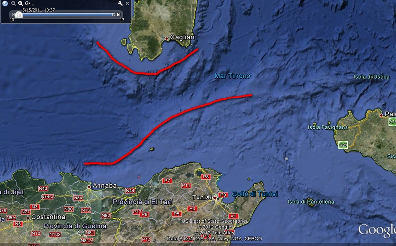 E secondo voi può centrare qualcosa la "Crisi del Messiniano"? Sia la Sardegna che le coste tunisine e nord africane hanno una buona piattaforma continentale (le linee rosse), molto probabilmente circa 5 milioni di anni fa queste aree geografiche erano molto più vicine di oggi!