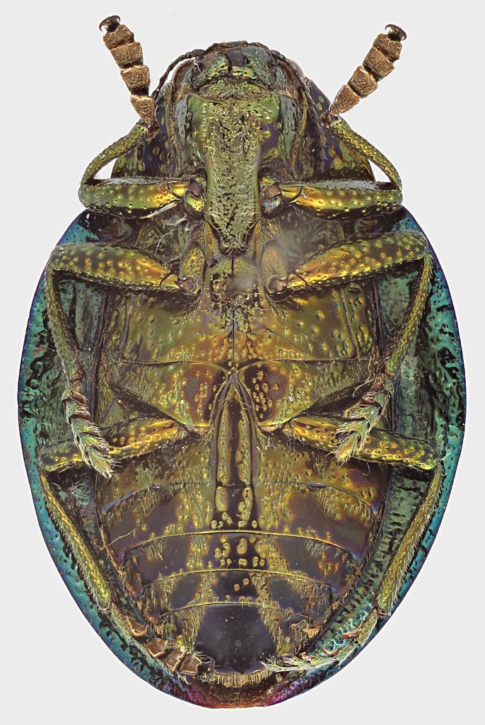 Andricus ha scritto: Se non sbaglio in un'altra discussione Maurizio aveva detto che specie con adattamenti simili da vive sono ricoperte da una pruina che le rende mimetiche(questa pruina è quasi sempre assente negli esemplari preparati) e le espansioni permettono una aderenza perfetta al substrato facendo sparire ogni ombra, praticamente come i Cassidini  I giovani hanno la memoria che funziona! Infatti parecchio tempo fa ne avevo parlato a proposito di un' altra specie dello stesso sottogenere. La cosa strana è che nel multiforme genere Polybothris ci sono altre specie in cui l'espansione/appiattimento rigurda solo alcune parti del corpo, come il protorace, parte delle elitre, o altro, oppure non c'è per niente, ed hanno la solita forma da Buprestide, solo un po' allargata, come in questo, ma in qualche caso anche snella, quasi da Agrilus (lo metterò quando possibile). Nel sottogenere Coccinellopsis la forma è sempre da ovale a praticamente sferica.