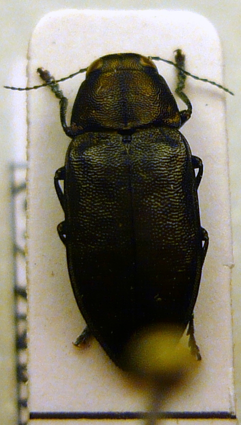 Non si riesce a capire se le elitre siano o meno denticolate all'estremità (la foto migliore, la prima, ha lo spillo che copre l'estremità delle elitre quasi completamente, mentre nelle altre tre solo in una sembra di intravedere qualche accenno di denticolazione, che a volte c'è anche in knoteki, benché poco evidente, e nelle altre due non si vede affatto). Per l'altro crattere, la scultura del protorace, il primo esemplare sembra corrispondere a formaneki, ma nei tre successivi due sembrano avere, più che una punteggiatura, delle rughe, che dovrebbero essere tipiche di knoteki.