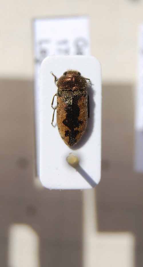 Ciao Carlo, probabilmente hai preso il Chrysobotris affinis che spesso condivide le cataste di latifoglie con la A. pilosellae nelle località dove ci sono entrambe le specie.