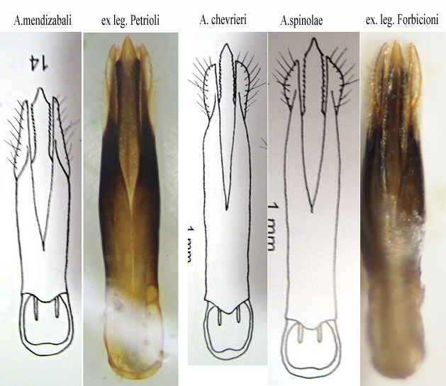 En mi opinión puede tratarse de A. mendizabali. El edeago (y las imagenes del adulto) se asemeja a esta especie, y a las fotos del edeago de Forbicione e Petrioli lg.