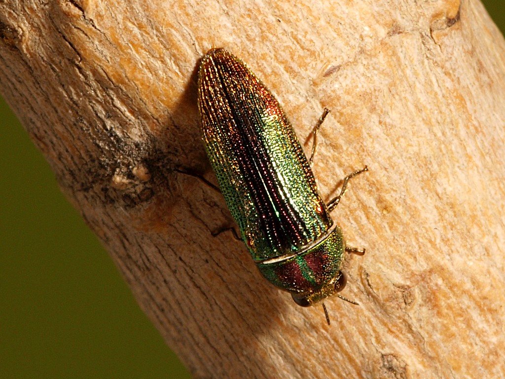 Tenuto conto che un po' cambia per effetto dell'illuminazione (l'esemplare preparato è stato fotografato con luce più diffusa rispetto a quello vivo, e questo elimina i riflessi e rende i colori più visibili), la differenza di colore è reale (nei Buprestidi a colorazione fisica, come questi, non ci sono cambiamenti di colore tra esemplari vivi e morti, se si esclude l'eventuale perdita di pruinosita, che però in questi non è presente.