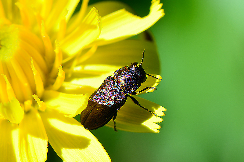 I fiori gialli in Sila sono pieni di questi piccoli e frenetici buprestidi, purtroppo per vari motivi non ho potuto fotografarli meglio  Di che si tratta? Aggiungo questa immagine sfocata giusto per dare un'idea delle dimensioni