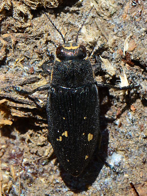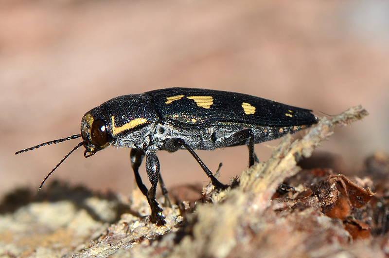 Già ultra soddisfatto per i ritrovamenti decido di tornare all'auto ma, ripensando anche a quanto letto sul forum in merito agli orari di comparsa di determinate specie, mi convinco a dare un'altro sguardo alla solita catasta di pini prima di prendere la strada verso casa, e meno male... sarà che sono agli inizi e molte specie non le ho mai incontrate, ma tante nuove tutte insieme finora non mi era mai capitato di trovarle, di questa poi ce n'era un vero sciame  Credo sia Buprestis (Ancylocheira) novemmaculata novemmaculata, ma ho qualche dubbio con la octoguttata non conoscendo le differenze tra le due specie, perciò vi chiedo una conferma