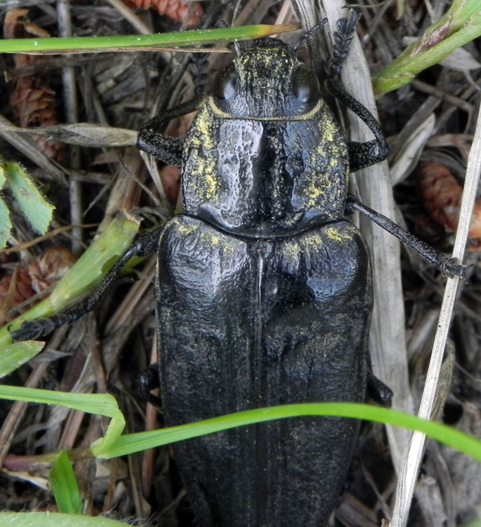 Quel "giallo diffuso sul corpo" altro non è che una secrezione pulverulenta prodotta un po' da tutte le specie di Chalcophora nonchè da molti altri Buprestidi. Contribuisce a renderli molto difficili da vedere quando restano immobili sui tronchi o anche tra gli aghi dei pini. Purtroppo si stacca al minimo tocco, per non parlare se si bagnano di etere. Di conseguenza quasi tutti gli esemplari conservati in collezione ne mostrano solo qualche traccia o ne sono completamente privi, specie se sono stati conservati in alcool. Non mi ero accorto della risposta... dunque è ancora lei  Grazie Maurizio, soprattutto per la spiegazione riguardante la secrezione, ne ero completamente ignaro... mi pareva che non fosse polline