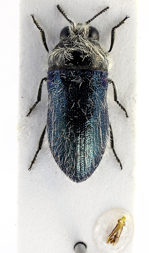 Anch'io avevo pensato ad A. cyanipennis, di cui ho un paio di esemplari spagnoli. In particolare, gli intervalli elitrali dell'esemplare di Daniele mi sembravano poco compatibili con quelli descritti da Mark per A. holocyanea. Idem dicasi per gli antennomeri, ben poco dilatati. Le dimensioni non le ho considerate dirimenti, come pure le proporzioni lunghezza - larghezza, estremamente variabili in molte specie di Euacmaeoderella ed in particolare di villosula. Di quest'ultima specie ho una serie del Libano che va da "giocatore di basket" a "tarabozzolo".