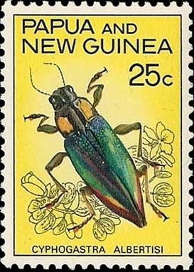 Confesso di avere non poche difficoltà ad accettare la serie di sinonimie presenti su Bellamy, C. L. 2008, "A World Catalogue and Bibliography of the Jewel Beetles (Coleoptera: Buprestoidea)", e riportate anche sulla checklist visibile qui: Cyphogastra semipurpurea semipurpurea (Laporte & Gory) 1835:19 (Chrysodema). syn. timoriensis (Laporte & Gory) 1835:22 (Chrysodema). syn. chevrolatii Deyrolle 1864:39. a syn. albertisii Gestro 1877a:352. n syn. suffusa Waterhouse 1914:492. n syn. violaceiventris Kerremans 1895b:203. syn. infranitens Kerremans 1910b:186. syn. aereiventris Kerremans 1895b:205. syn. cupricollis Kerremans 1895b:207. n syn. nitida Kerremans 1895b:208. syn. amabilis Kerremans 1895a:355. syn. nigricollis Kerremans 1895a:356. syn. lateralis Kerremans 1898b:116. n syn. pyritosa Kerremans 1911a:296. syn. papuigena Obenberger 1922b:68. e syn. violaceorubra Théry 1923b:230. syn. insularis Théry 1923b:247. ssp. rollei Théry 1908:80. n ssp. romanensis Théry 1926a:69. ssp. rothschildi Kerremans 1911a:295. ssp. wetteriana Théry 1935g:249. Basta guardare quelle presenti sul Forum.