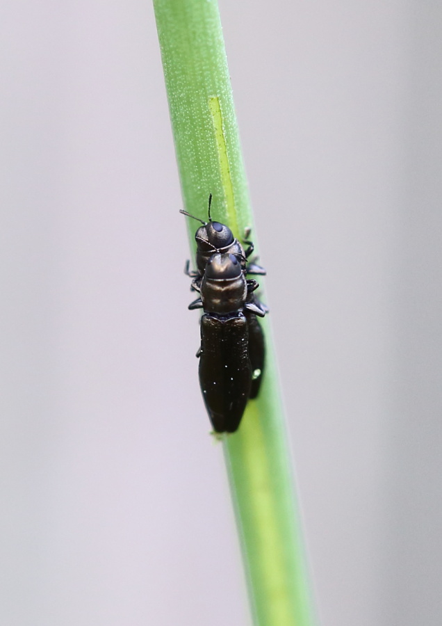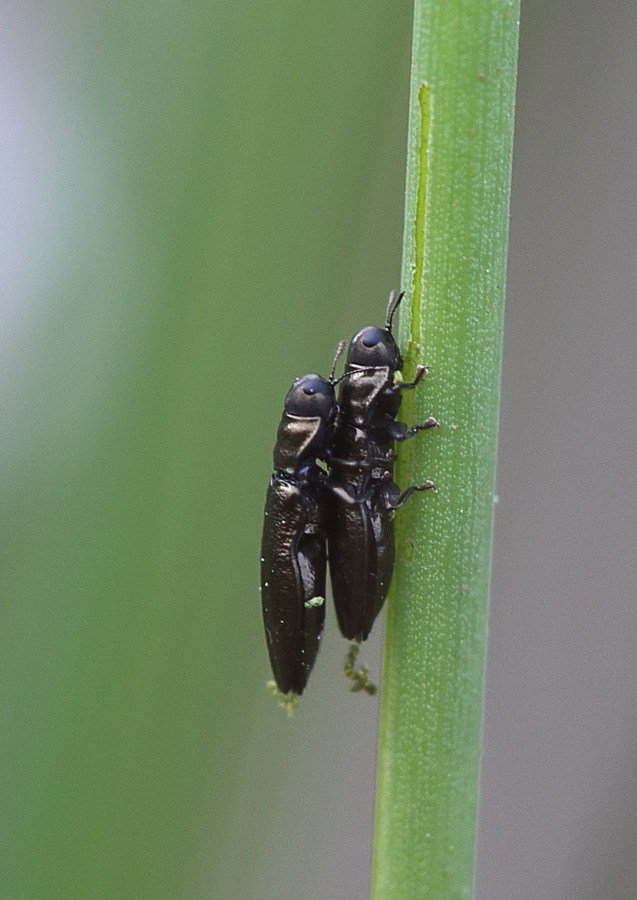 La cosa simpatica è che isolando gli Aphanisticus per fare quella brutta foto allo stereomicroscopio mi sono accorto che tra essi c'era un minuscolo Elateride che non ricordo di aver preso in altro luogo se non sugli stessi Juncus sp.