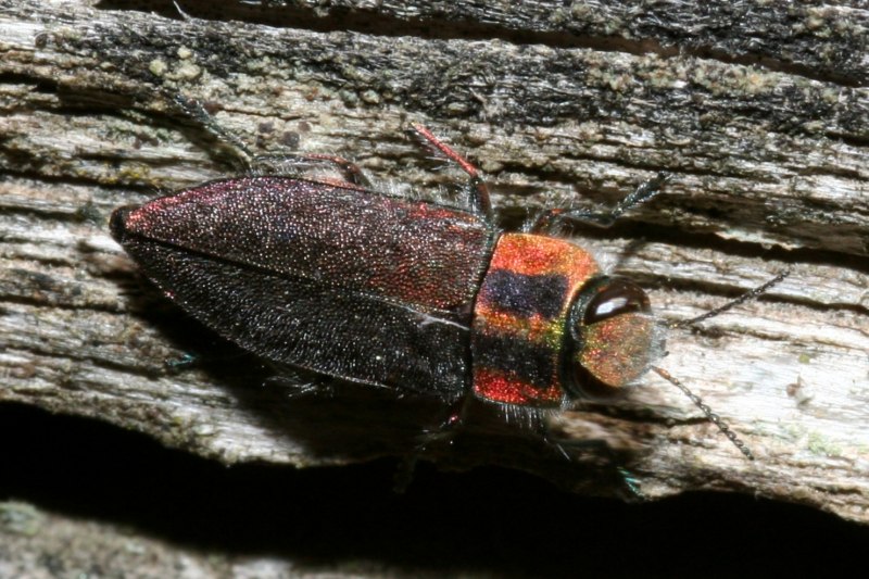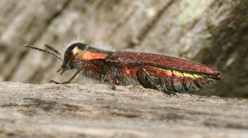 Confermo quanto scritto da Augusto: questa specie non attacca (per quanto se ne sa) il castagno, e soprattutto non così vecchio! La pianta ospite è l'olmo, e attacca solo rami e fusti di dimensioni non eccessive, deperiti, morenti o appena morti, e comunque solo se hanno ancora la corteccia ben attaccata, visto che le larve sono subcorticicole. Come tanti altri Buprestidi non resistono alla vista di paletti o steccati al sole, e ci vanno a prescindere dal tipo di legno, ma normalmente non vi depongono.