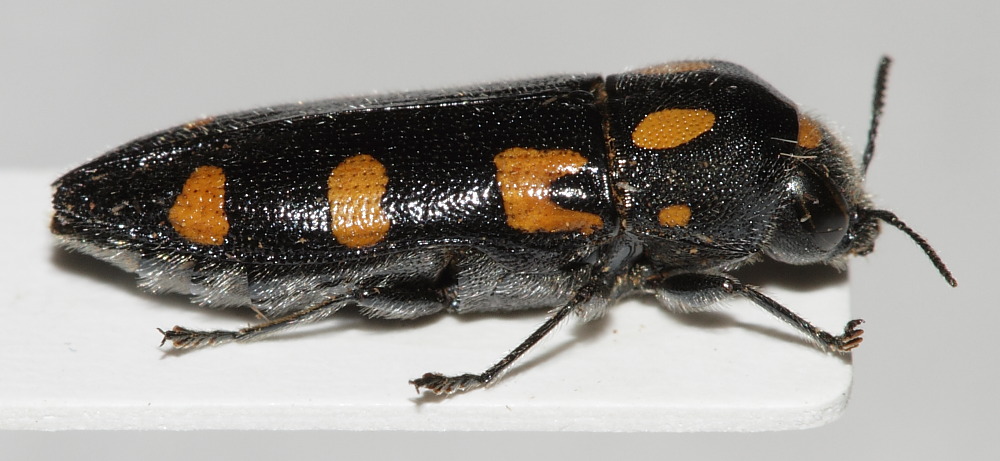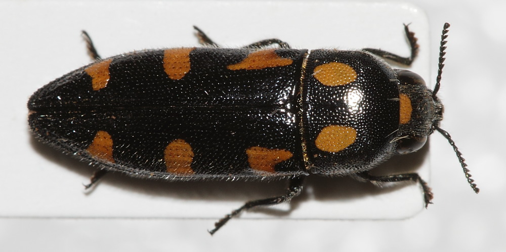 E' effettivamente uno dei Buprestidi più comuni. Basta guardare sul fogliame delle piante ospiti nel momento giusto ed è molto probabile trovarne qualcuno. Comunque è sempre una bella bestia. Questa poi è una delle poche con veramente undici macchie. Di solito ne manca sempre qualcuna.
