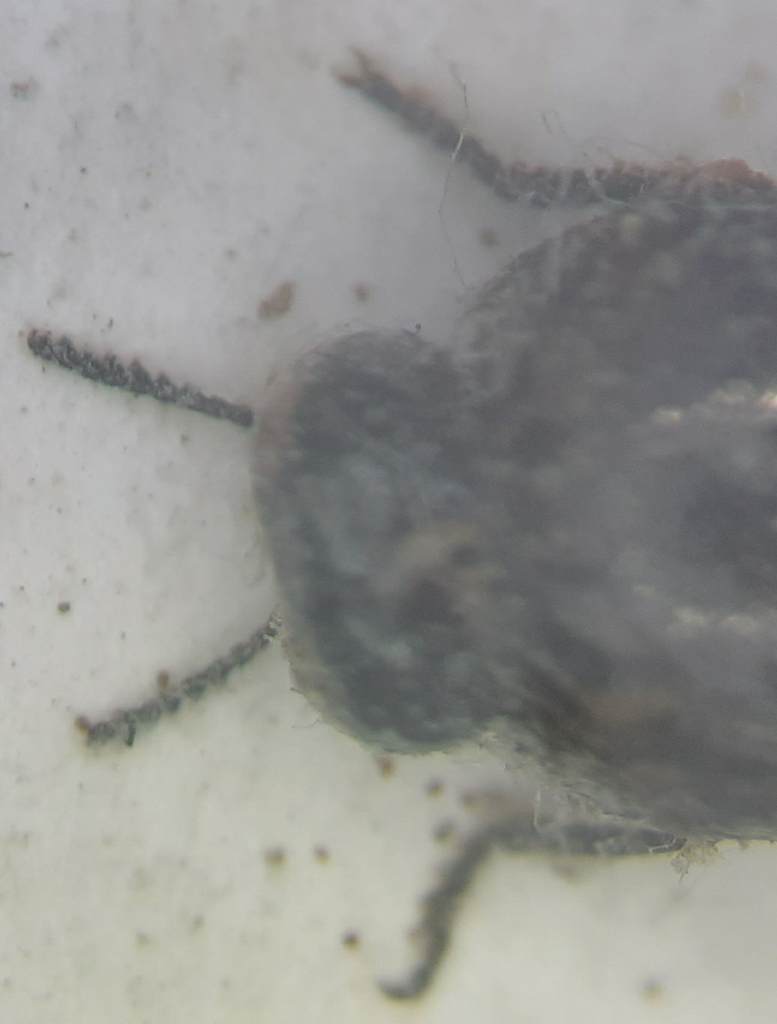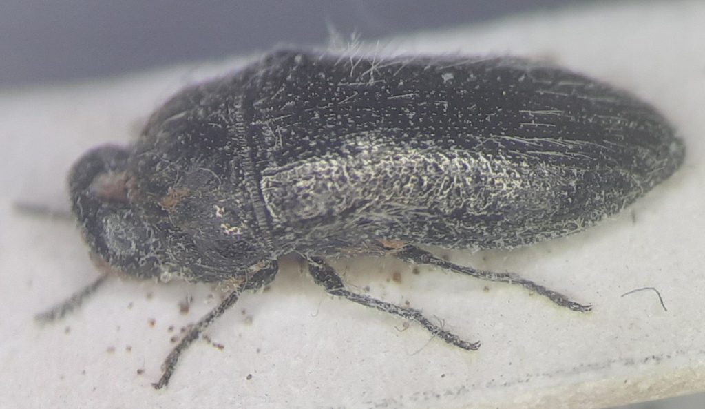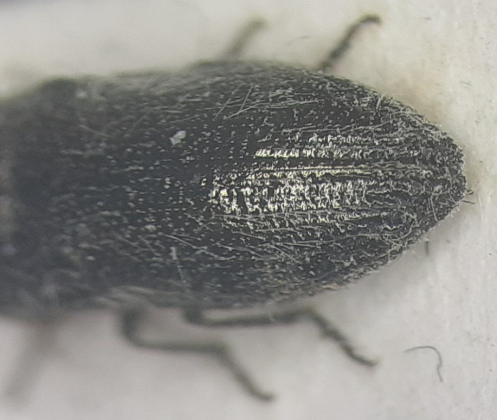 Eccomi con i dettagli. Purtroppo l'esemplare è molto sporco, mi è stato dato così, ma se necessario lo ripreparo senza problemi. Magari è l'esemplare rovinato, ma non noto alcun cenno di ciuffi di pubescenza alla 2/3 elitrale.