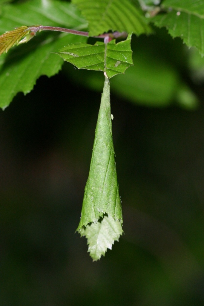 Anche se finora vi ho fatto vedere solo sigari attaccati alla foglia (in modo caratteristico, solo con la nervatura principale), questa non è la regola. La femmina, dopo aver confezionato il rotolo, ed avervi deposto diverse uova, spesso procede a tagliare anche questo collegamento, facendo cadere a terra il sigaro. Ci sono alcuni sentieri, per esempio nei Colli Berici, dove camminando in aprile vi trovate a calpestare un tappeto di queste piccole strutture Gli adulti in realtà sono poco visibili, relativamente piccoli (intorno ai 4 mm) e tendono a restare sulla parte alta delle chiome; inoltre la loro vita da adulti è molto breve (già in maggio, a basse quote, non si trovano più). La loro presenza, comunque, viene segnalata dai sigari sul terreno. Le larve che schiudono si nutrono dei tessuti della foglia, ma presto ne escono e si interrano. Rivedranno la luce solo nella primavera successiva.