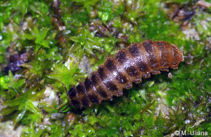 Certamente in bellezza non può reggere il confronto (anzi... :sick:), comunque le femmine di Drilidae attere e "spente" (a differenza delle cugine lucciole, che si possono individuare grazie alle emissioni luminose) sono sempre rare a vedersi. Questa l'ho allevata ex larva, nutrendo la larvetta con Theba pisana e aspettando pazientemente che svernasse nel guscio della sua preda, nella speranza che mi nascesse una femmina piuttosto che un maschio.