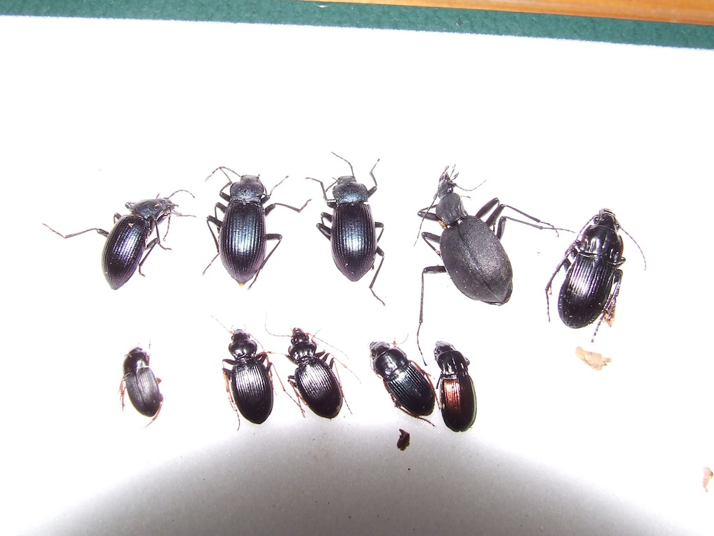 Il Carabide tutto a destra è un Pterostichus bicolor amorei. Le Nebria saranno tibialis?? per gli altri due difficile dire di più che uno è un Calathus, l'altro un Harpalus, forse rubripes.