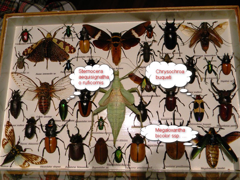 Devo dire che quelli di cui si legge il nome sembrano determinati correttamente. Quel Melolonthidae determinato come Buprestidae sp. ricorre in diverse cassette entomolgiche che ho visto tempo fa in vendita su Ebay. Evidentemente vengono tutti dallo stesso fornitore iniziale. Guarda ad esempio qui e qui.