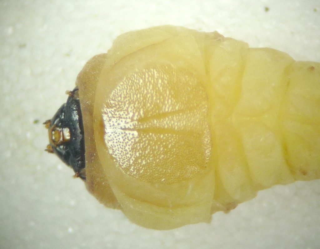 Però se sono larve mature e non sono state danneggiate allora il discorso è diverso. Basta lasciarle tranquille in un contenitore e spesso completano la metamorfosi in pupa e adulto. E di solito in tempo piuttosto breve. C'è solo il rischio che, o per umidità errata, o perchè non stanno più nella celletta, l'adulto non riesca ad uscire bene dalla esuvia pupale, e le elitre non riescano a distendersi bene (o per nulla). Comunque, se sono mature (te ne accorgi perchè si muovono poco, hanno un aspetto più tozzo, e anche il colore cambia leggermente, non resta altro da fare che metterle in un contenitore. Puoi usare una provetta (non serve grande) oppure una scatoletta (io uso quelle dei formaggini, tonde e coi buchetti, oppure quelle rettangolari, piatte, dei formaggi molli), ma attenzione che la larva/pupa non poggi direttamente sulla plastica. Meglio poggiarla su un pezzo di carta igienica (ed eventualmente coprirla con un altro), o fare una specie di nicchia, sempre di carta igienica, ad imitare la celletta. Attenzione a inumidirla. I Buprestidi non amano molto l'umido. Quindi inumidisci magari un po' la carta, ma non a contatto con la larva.