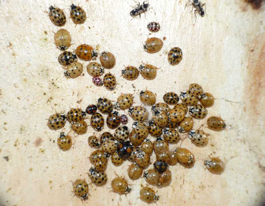 Per allietare questa discussione, posto alcune foto di assembramenti naturali di coccinelle (Harmonia axyridis e non) sotto la corteccia degli eucalipti