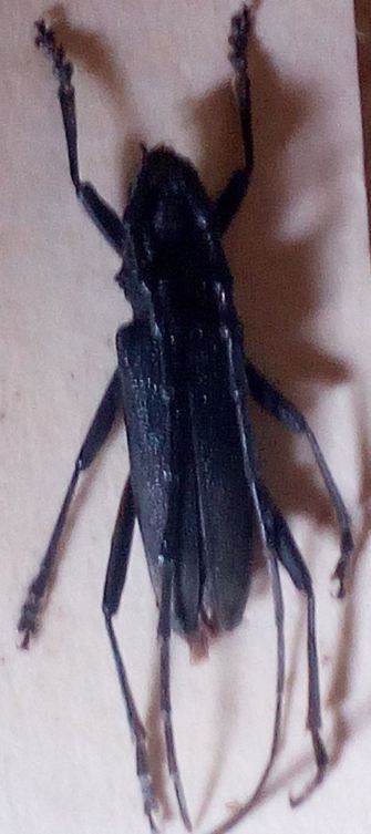 Questo è l'ultimo Cerambix. Trovato annegato in un abbeveratoio insieme ad altri 2. Due foto: una con flash ed una senza. Confrontandolo col cerdo è decisamente più grigio. Circa 2 cm senza antenne