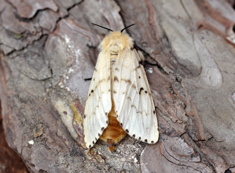 Il 14/6/2010 ho trovato sui Colli Euganei (PD) dei bruchi di Lymantria dispar e non avendo mai visto la femmina in natura mi sono portata a casa il più grosso, confidando nella fortuna; mi è andata bene, perchè dopo pochi giorni (per fortuna, era una specie di idrovora per le foglie di castagno) si è impupata e il 2/7 è sfarfallata una femmina.