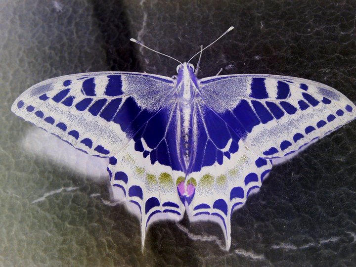 Però,se può esservi d'aiuto,posso dirvi che mi hanno anche detto che,cito testualmente "la papilio machon ha macchie azzurre sulla parte inferiore dell ala quando viene sottoposta a stress termici evidentemente questo esemplare ha subito uno stress abbastanza notevole considerando il blu delle macchioline centrali"...a voi risulta come ipotesi?