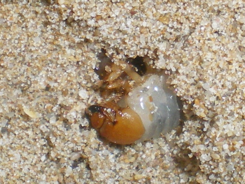 StagBeetle ha scritto: Ieri, con Alessio ( Alessio89) abbiamo trascorso una bella mattinata a caccia in spiaggia. A San Benedetto (Ascoli Piceno), in una spiaggia sabbiosa, abbiamo trovato diverse larve di Anomala sia tra le radici di piante alofile, sia sotto i tronchi spiaggiati. Le abbiamo prese e sto tentando di allevarle... Le ho messe in un contenitore con della sabbia, una patata, una carota ed un pezzo di legno semi-seppellito... Può andare bene?!?!? Come devo fare? Grazie!  Anni fa avevo provato a fare la stessa cosa (sabbia, patata, catota e qualche radice di piante erbacee) con larve di Anomala devota (credo), ma dopo qualche tempo nella sabbia non c'era più niente! Sparite anche le eventuali spoglie delle larve morte.