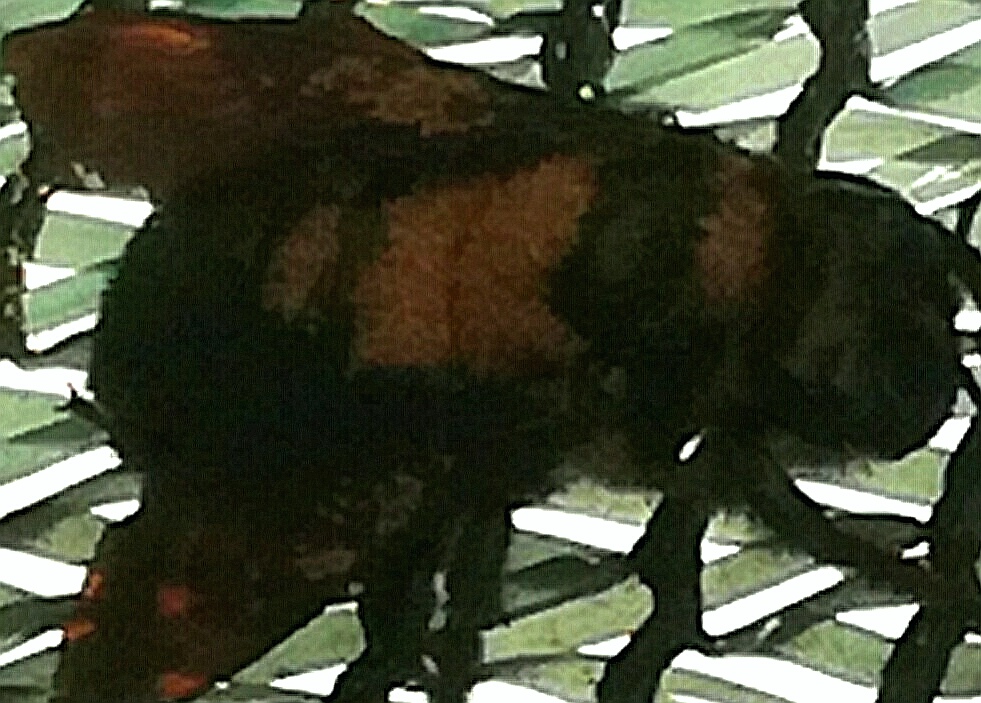 Ipotizzo particolari di foto fatte controluce e poi fortemente schiarite e qualche altro trattamento (scontorno o non so che altro). Oppure un effetto voluto, anche se incomprensibile, per rendere più difficile l'identificazione? Per me si tratta di Xylocopa violacea.