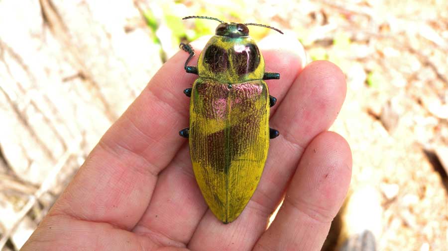 Seguo da tempo un gruppo venezuelano di Facebook sugli insetti, e in un messaggio su questa grossa specie di Buprestidae si legge tra l'altro "huele muy mal" (ovvero: ha un pessimo odore). A me non è mai capitato di catturarne, per cui mi interesserebbe sapere se a qualcuno risulta che questa e/o altre specie di Buprestidae emanino un cattivo odore.