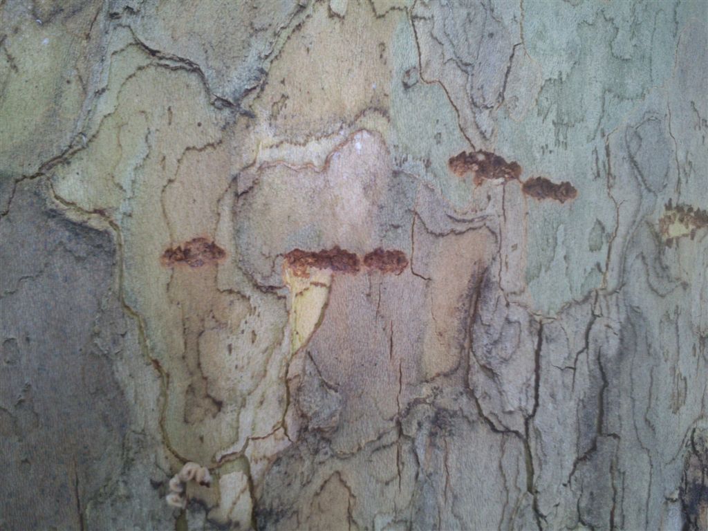 ho osservato su un grosso platano (30) delle tacche semicircolari (solo su un lato del tronco), poco profonde, che si ripetono per alcuni metri (Partono da 1/1.5 mt da terra fino a 6/7 mt).