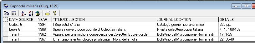 Ad esempio, se vai su Capnodis miliaris -> sites, trovi: