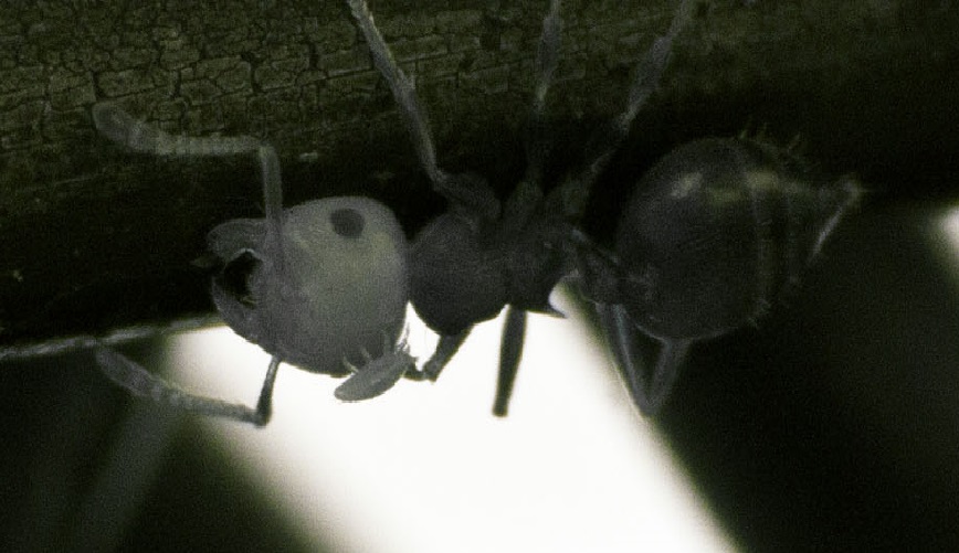 Salve a tutti, sono nuovo nel forum e non mi intendo granché di insetti anche se mi affascinano parecchio. Mi sono iscritto per chiedere agli esperti del settore, informazioni riguardo uno strano insetto che ho notato sulla testa di una formica. A Pasqua mi trovavo in montagna, e tra una foto e l'altra (sono un appassionato di fotografia) mi sono ritrovato a far foto ad un filo in cui passavano, tutte in fila, una miriade di formiche. Tra queste, ho notato che una aveva quel che ad occhio sembrava solo un puntino sulla testa. In realtà, era una specie di insetto molto piccolo. La formica pareva comportarsi come tutte le altre (l'ho osservata a lungo) ma non ho mai visto nulla di simile e la cosa mi affascina. Vi posto 2 sezioni ingrandite di alcune foto macro che ho fatto e spero riusciate a soddisfare la mia curiosità! La foto non è nella luce visibile, ma negli infrarossi; i colori strani sono dovuti a quello. Saluti a tutti!