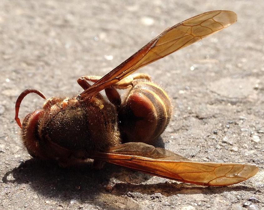 Ci credo, :( :( :( che ti ha fatto male: è una Vespa crabro (calabrone), la cui puntura è decisamente dolorosa.