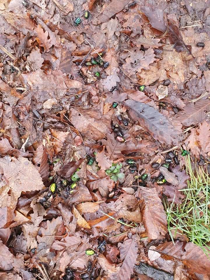 Ma erano vivi o morti? Qualche esemplare sembra mutilato o mezzo mangiato. Magari vengono dalla cavità di un albero soprastante, che qualche animale ha svuotato per nutrirsi dei cetoniini (che spesso svernano già adulti in celletta), ed alcuni sono caduti a terra.