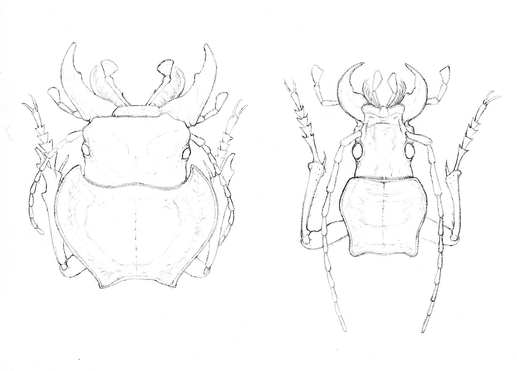 Buon pomeriggio a tutti, entomologi italiani. Sono Marianna, ho 25 anni e sono una studentessa di Illustrazione appassionata di entomologia, vi scrivo per proporvi una determinazione un pò particolare che spero che vi faccia divertire. Sto realizzando per il corso di Illustrazione una tavola entomologica o perlomeno ci provo Per capire se sto lavorando bene vorrei mostrarvi un disegno a matita che rappresentano testa e pronoto di due creature e chiedervi gentilmente una determinazione. Naturalmente essendo un disegno in bianco e non a figura intera capisco che sarà un problema riconoscere la specie ma magari si può intuire a che famiglia appartengono, inoltre vi chiedo un ultimo piccolo aiuto, ditemi pure se secondo voi che siete degli esperti vi sono cose errate o mal rappresentate. Grazie per l'attenzione, spero non sia un problema per voi. Appena termino la tavola intera la posto  Vi auguro un buon proseguimento di giornata. Marianna.