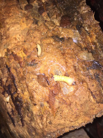Come ho già detto, le larve che hai visto non fanno altro che decomporre il legno già marcio, quindi bruciarle è servito a poco. Inoltre gli Arhopalus vivono indistintamente sia tra corteccia e legno sia nel vero e proprio legno, anche ad alcuni centimetri di profondità dalla superficie del tronco.