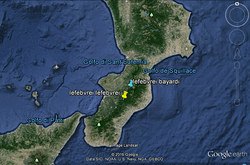 Se dovessi essere io a cercare direi che sulle Serre mi aspetterei di trovare il lefebvrei e in Sila il bayardi con possibilità di intermedi nelle zone più a nord delle Serre.