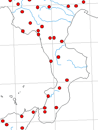 Ecco le località di CkMap: CS Valico di Campo Tenese, Franciscolo, 1997 1986 CS Luzzi, 900 m, Coll. Terzani, Firenze 1970 VV Capistrano, faggeta, Franciscolo, 1997 1994 CS San Fili, Torre Settimo, Coll. Zilioli, Varese 1996 VV Nicotera, Franciscolo, 1997 1954 RC Sant'Eufemia d'Aspromonte, Franciscolo, 1997 RC Gambarie, 1300 m, Franciscolo, 1997 VV Monterosso Calabro, 800 m, Franciscolo, 1997 1994 CS Sibari, Coll. Zilioli, Varese 1996 CZ Catanzaro, Coll. Museo "La Specola" Firenze CS Monte Pollino, Franciscolo, 1997 1950 RC Antonimina, Franciscolo, 1997 1954 CS Convento di Colloreto, 1100 m, Miksic, 1959b 1950 (nell'ordine: provincia, località, eventuale altitudine, ambiente, ecc., pubblicazione, anno di ritrovamento) Io dovrei averne un solo esemplare, preso, se ricordo bene, dalle parti di Campotenese, quindi all'estremo Nord della Calabria.