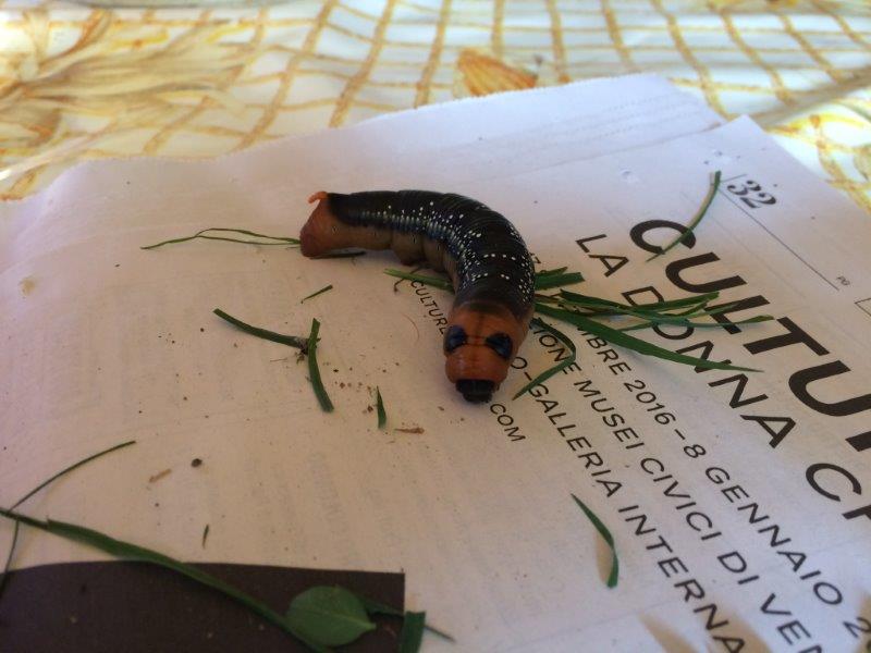 Le larve di Daphnis nerii possono avere una colorazione verdognola o marroncina.