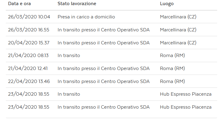 poi si fermerà probabilmente dai signorini di Peschiera Borromeo che ci giocherelleranno per qualche giorno prima di passarla al corriere il quale, quando sarà comodo (c'è il covid19 in agguato dietro ogni angolo), ti farà la consegna...in Italia funziona così, salvo casi eccezionali.