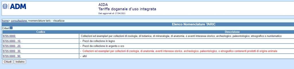 A inizio anno, poco dopo l'entrata in vigore del nuovo modulo, ho spedito delle bestie in Canada. Dopo 5-10 minuti che io e l'impiegato - molto gentile e disperato anche lui - cercavamo di capire al computer quale dannata descrizione/codice indicare, abbiamo finalmente trovato la prima voce della lista (collezioni ed esemplari etc.) e messo quella. Tutto filato liscio.