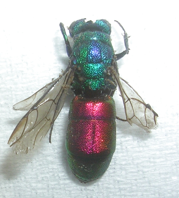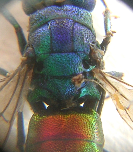 se come sembra dalla foto dorsale, il margine visto di profilo non è piano e affilato, ma vistosamente ripiegato in direzione ventrale, dovrebbe essere Chrysura rufiventris rufiventris (Dahlbom, 1854)