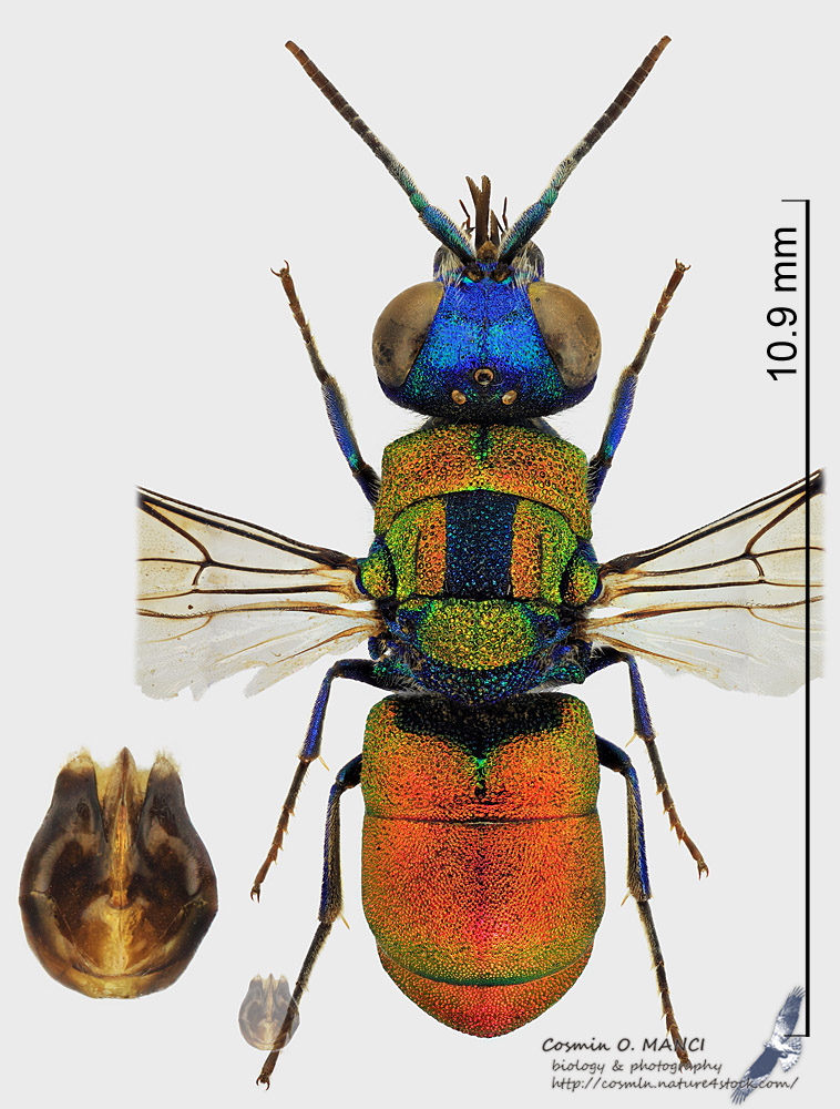 Assumo che sono maschio e femmina dalla stessa specie, raccolti su fiori di Achillea in steppe area vicino a Sinoe (Dobrodja) nel 16.giugno.2012, leg. Cosmin Manci. Questi sono postati anche su Chrysis forum qui.