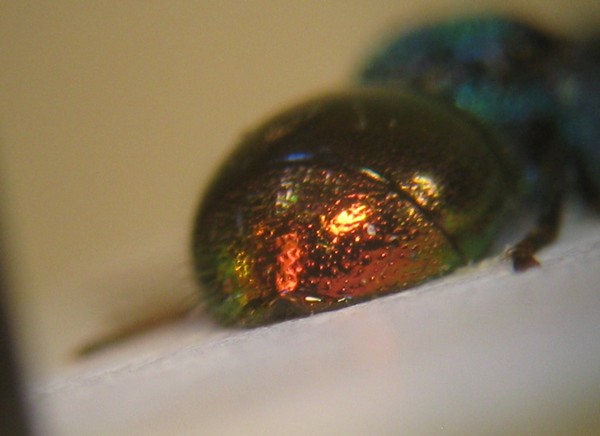 dalla punteggiatura dello scutum non sembra uno Pseudomalus, direi invece un Philoctetes; se guardi la punteggiatura dell'area mediana dello scutum vedi che nello Ps. auratus ci sono dei grossi punti raggruppati nella parte posteriore, a ridosso dello scutello, mentre qui ce ne sono alcuni allineati lungo i notauli, cioè i solchi che separano l'area mediana dalle laterali