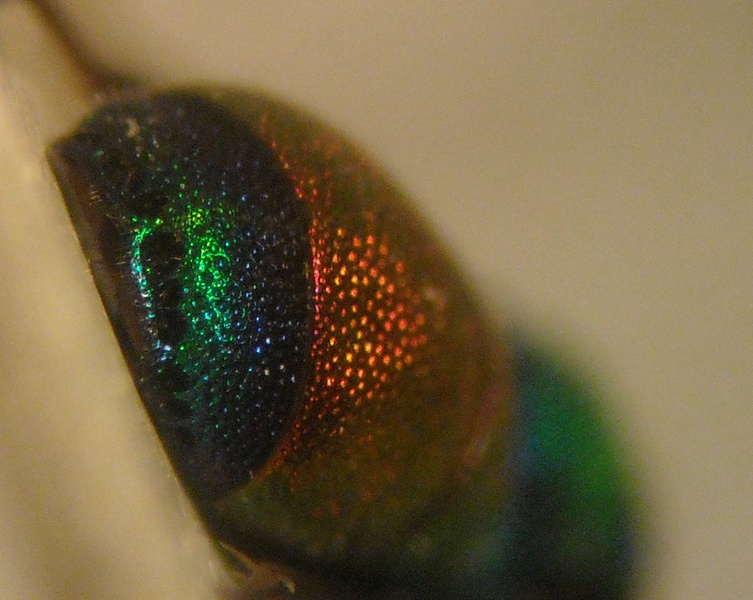 Tanto per aggiungere spine al ginepraio riguardavo questa bestiola; a me sembra piuttosto diversa da quella di Sicilia; in particolare nell'esemplare di Giuseppe il mesosoma è più snello, il margine distale del TIII è diverso e la punteggiatura dello scutello è più fitta. Potresti controllare se la cavità facciale è pubescente?