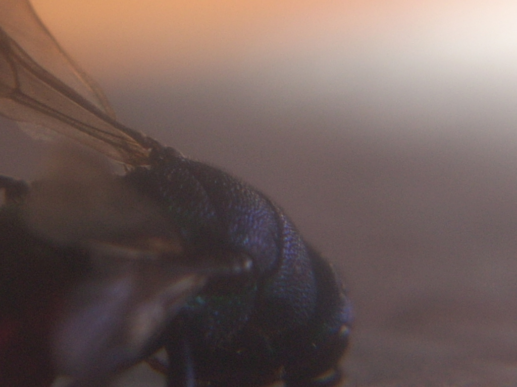 mi verrebbe da dire femmina di Hedychrum gerstaeckeri, ma per confermarlo avrei bisogno una foto laterale del torace, con dietro uno sfondo ben illuminato, in modo che in controluce si veda bene la pubescenza lungo il profilo dorsale (pubescenza che devi cercare di mettere a fuoco)