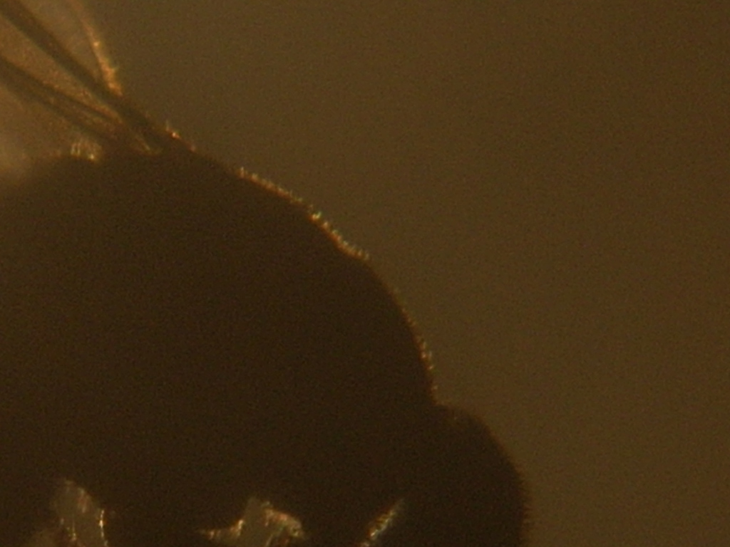Ho provato senza luce e sono riuscito a fare una fotaccia in cui si vede leggermente sul bordo del torace questa pubescenza che è difficile da mettere a fuoco da quanto è corta.