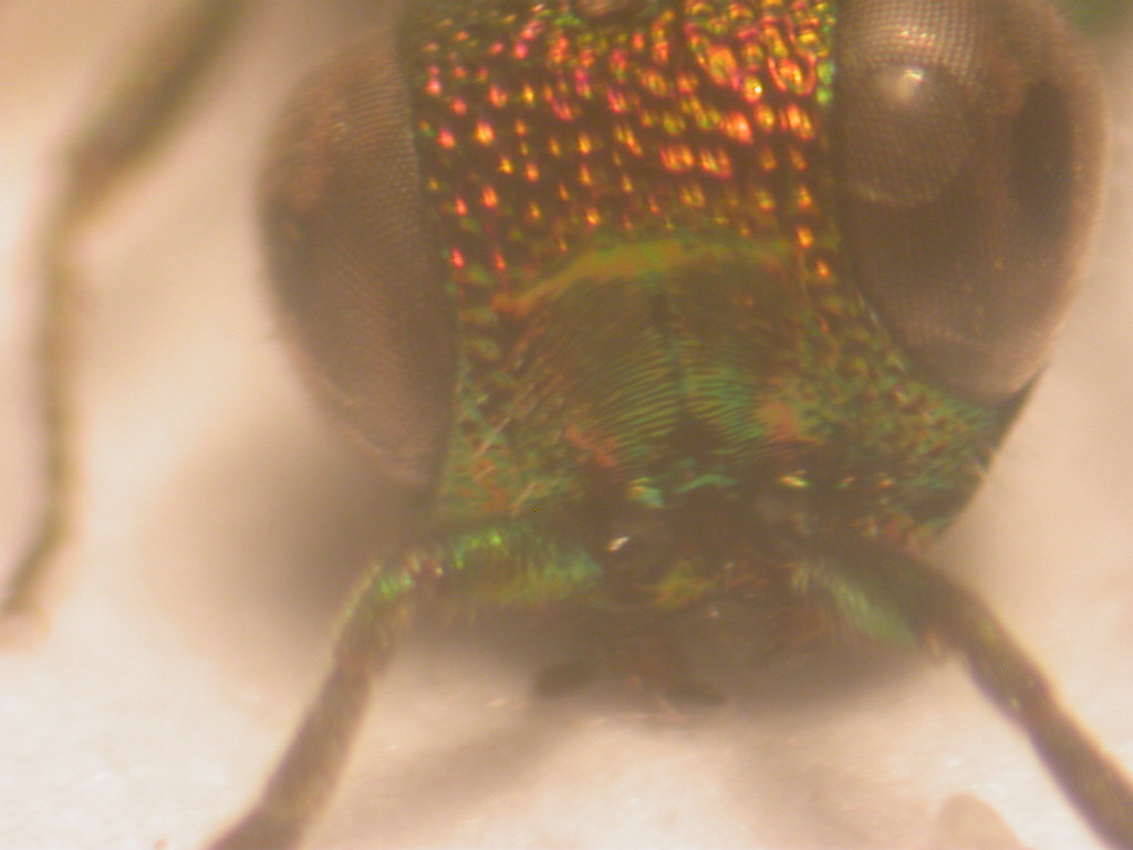 Ieri pomeriggio avevo programmato una uscita dedicata a maschi di mutillidi ma dopo ore e ore di sole non ne ho preso neppure uno! :x Mi sono consolato con alcuni crisidi: questo e' lungo appena 5 mm, raccolto in un unico esemplare su infiorescenza di Daucus carota striminzita: per quanto riguarda il genere direi Chrysis, per la specie passo...