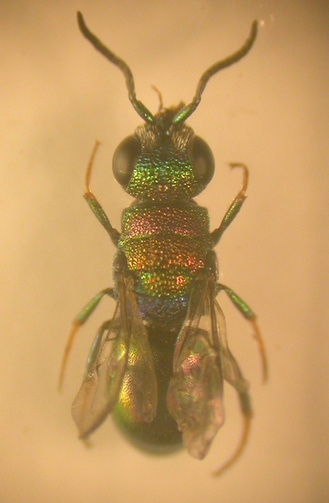 La foto è peggiore del solito ma l'esemplare è davvero piccolo: un Hedychridium di 3.3 mm. Raccolto su fronde di ontano, mentre retinavo Cleptes.