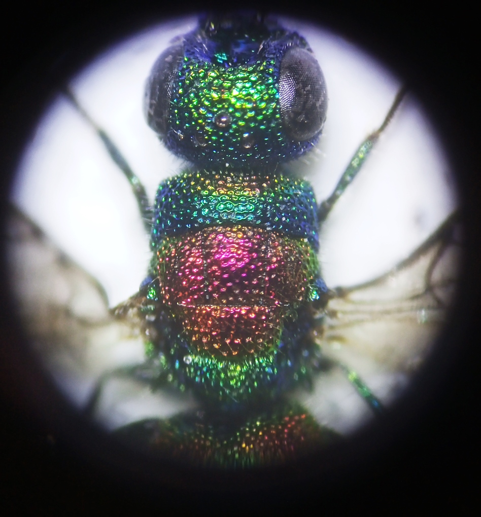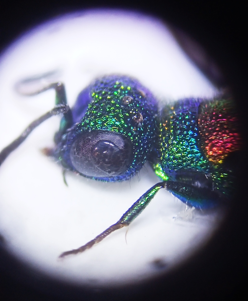 il gruppo è quello che dice michele :ok: auriceps direi di no, per la mancanza di colorazione rosso dorata sulla fronte e per l'estensione della colorazione blu sul T-I (nell'auriceps la fascia blu posteriore si estende in avanti sulla linea mediana spezzando la parte rosso dorata in due macchie laterali isolate), io sarei più per Chrysis leachii Shuckard, 1836, ma con un "cf.", anche perché già in italia in quel gruppo ci sono specie non ancora descritte, e quante sono nel resto d'europa non voglio neanche saperlo :to: