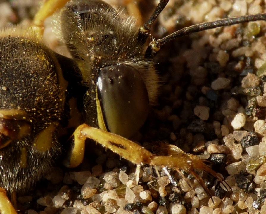 Imita probabilmente un Vespidae, ma si tratta, in realtà, di una Bembix sp. - Crabronidae (vedi, per confronto, la nostra galleria di specie)